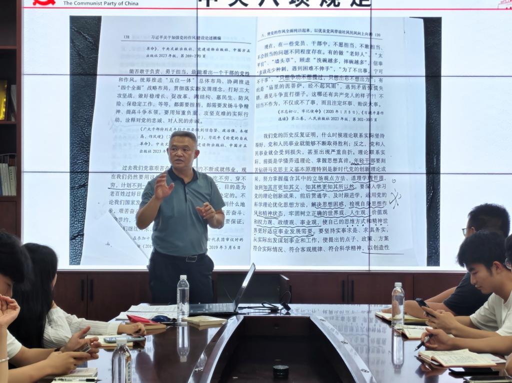 本网讯(土木工程学院 图/龙海东 文/徐明希 杨应江)2025年6月30日晚,土木工程学院党总支书记彭勇在敏行楼3547教室开展“深化认识,见诸行动——带头践行中央八项规定精神”专题党课。学院部分师生党员及入党积极分子参加。