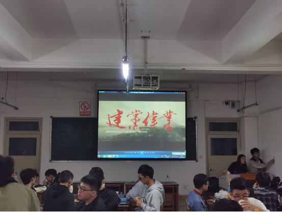 活动伊始,周景媛首先简要介绍中国共产主义青年团的历史,并向同学们讲解团员义务,告诫同学们要清楚自己的定位,履行好团员义务。其次,周景媛向同学们普及我国脱贫政策,并组织同学们对我国脱贫攻坚战展开交流,同时派小组代表对讨论结果进行发言。随后,周景媛组织观看爱国影片《建党伟业》。她表示,希望通过观看这部爱国影片,能增强同学们的爱国情怀,缅怀先烈,铭记历史。接着,周景媛同学组织同学们在班群里分享观影心得,并选出优质语段上传至易班平台。