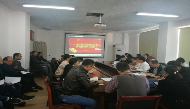 本网讯(土木工程学院 图/文 王艳芳)按照贵理工教师〔2019〕28号文件要求,结合“不忘初心、牢记使命”主题教育,为了进一步加强教师队伍建设,不断加强自身的行为修养,弘扬新风正气,提高教师自身修养,树立教师形象,土木工程学院于2019年10月18日下午1:30在行政楼1229会议室组织全体教职工开展师德教育学习活动。活动由土木工程学院党总支书记、院长王琳主持,学院全体教职员工参加了本次活动。