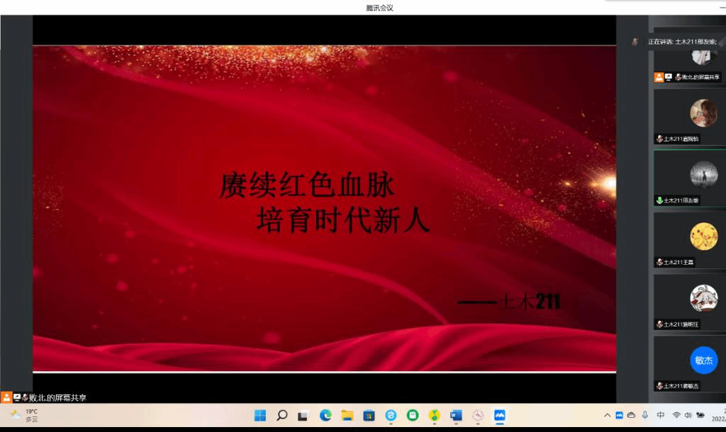 本网讯(土木工程学院 文/文青霞 图/文青霞) 9月10日,土木211班线上开展“赓续红色血脉,培育时代新人”主题团日活动,本次活动旨在加强同学们作为新时代青年的责任感与使命感,引导同学们深刻感悟党和国家的百年发展的伟大成就。本次活动由土木211班团支书文青霞主持,土木211班全体同学参与,学生科副科长李昀璐老师受邀参加本次活动。