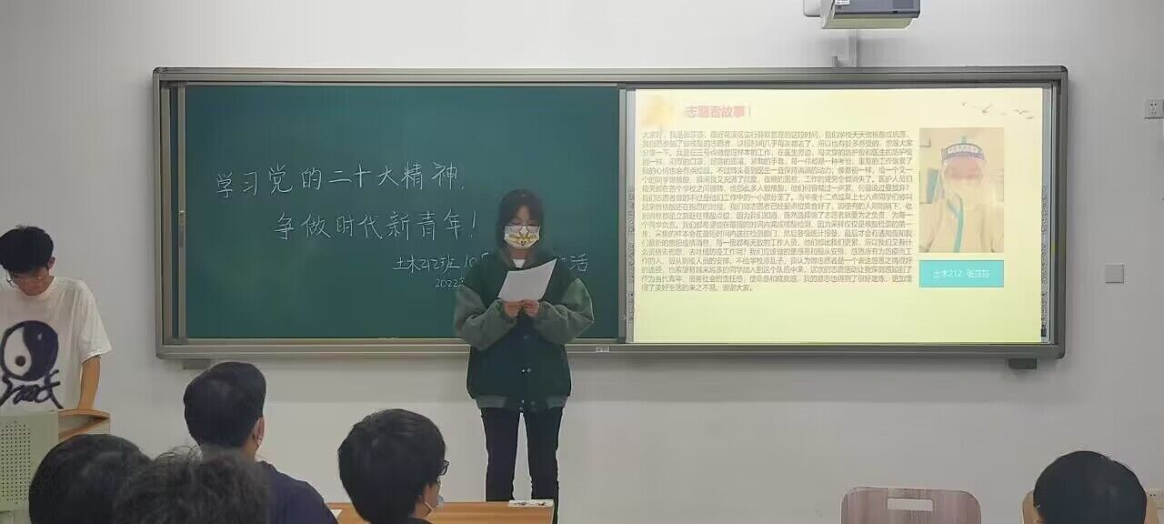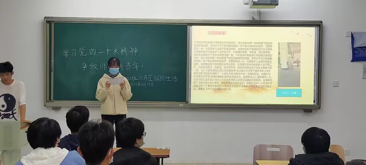 (本网讯 土木工程学院 文/雷耀华 图/雷耀华)2022年10月19日,土木工程212班于G2211教室举行以“学习党的二十大精神,争做时代新青年”主题团日活动,活动由团支部书记杨健主持,土木212班全体成员参与。
