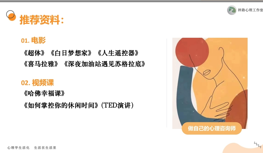 讲座最后,梓路向同学们分享有益于自身认识与发展的视频资料,鼓励同学们努力学习文化知识,掌握专业本领,选择适合自己发展的职业生涯路线,实现自己的人生目标。
