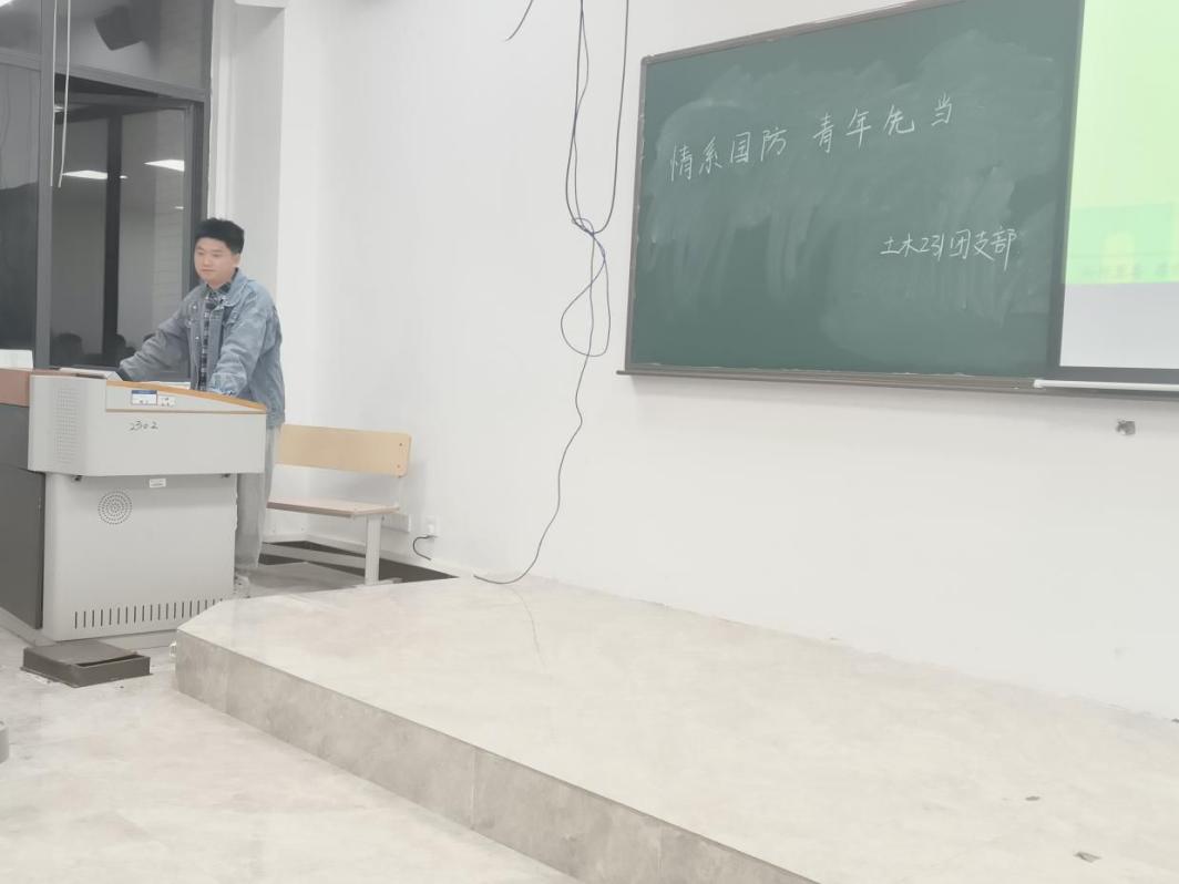 本网讯(土木工程学院 图/胡文明 文/田海霞)为加强同学们的国防意识,普及国防安全的重要性。土木231班于11月13日在敏行楼G3324开展了“情系国防,青年当先”主题团日活动。本次活动由土木231班团支书陈冬萱主持,土木234班退伍学生周权威、道桥202班退伍学生黎大雄主讲。土木231班全体同学参加。
