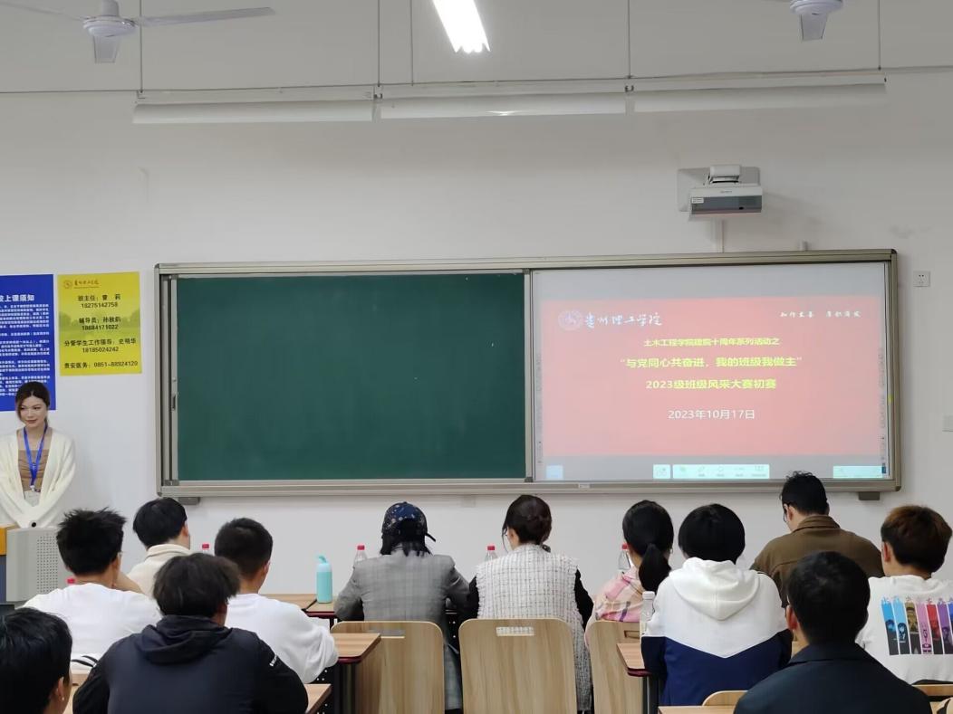 本网讯(土木工程学院 图/土木工程学院 文/杨颜挺)10月17日中午,土木工程学院2023级班级风采大赛初赛在开物楼G1201教室开展。本次比赛由土木工程学院党总支副书记杨文斯、辅导员丁玥、秦丽丽、吴立过、杨介男担任评委,土木231班江依函主持,2023级各班代表参加。