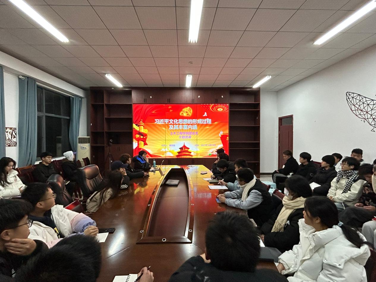 本网讯(土木工程学院 文/戎春发 图/徐卢松)为深入学习领会习近平文化思想的重要内涵,进一步推动我院团建工作,2023年12月19日晚,土木工程学院在敏行楼3547开展以“习近平文化思想的形成过程及其丰富内涵”为主题的团课活动,土木工程学院团总支负责人秦丽丽主讲,土木工程学院团干参加。