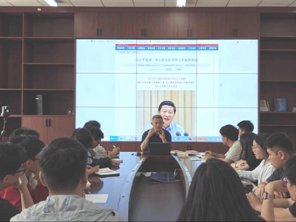 彭勇首先带领大家认真学习《习近平著作选读》中的《宣传思想工作的使命任务》《把宣传思想工作做得更好》《坚持党的新闻舆论工作的正确政治方向》等文章,要求同学们要从“道”的层面深刻认识“举旗帜、聚民心、育新人、兴文化、展形象”的使命任务,让宣传思想工作始终做到围绕中心、服务大局。