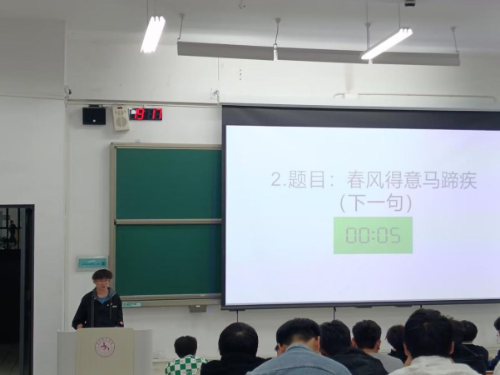 此次活动采用抢答的方式,随着主持人宣布比赛正式开始,现场的气氛立刻变得紧张而兴奋,选手们精神抖擞,目光如炬,仿佛在等待一个最佳的时机,竞争十分激烈。活动的题目涵盖各个朝代有名的诗人的诗词,题目难度不一,但都要求选手们具备快速反应和准确判断的能力。随着抢答的进行,现场气氛也逐渐升温,每当有选手成功抢答,现场便会爆发出一阵掌声和欢呼声,为选手的精彩表现喝彩。经过了激烈的竞争,最终决出了前十只队伍进入决赛。