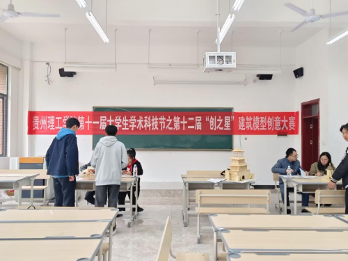 11月27,贵州理工学院第十二届“创之星”建筑模型创意大赛决赛在蕴华楼小礼堂举行,我院党总支副书记杨文斯、学生科副科长秦丽丽参加,双创委员卢云、教师刘兵、吴立过王壘、担任决赛评委。