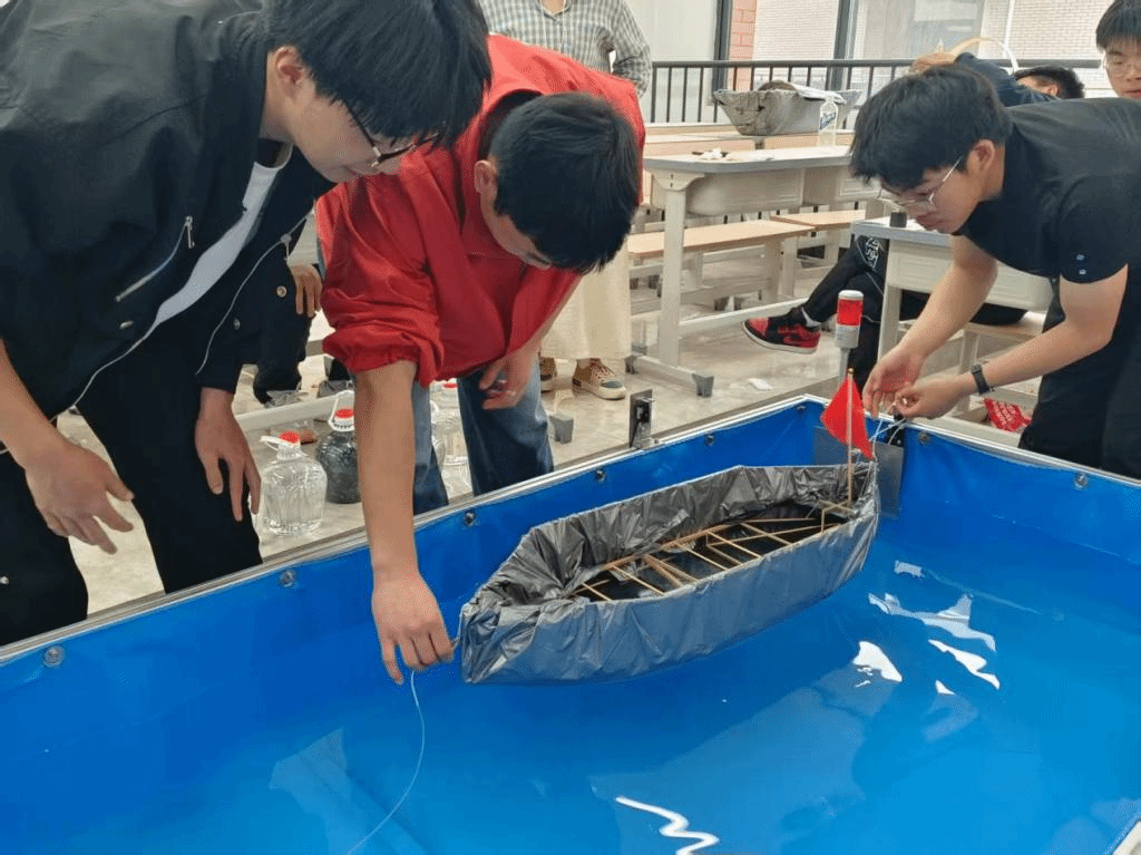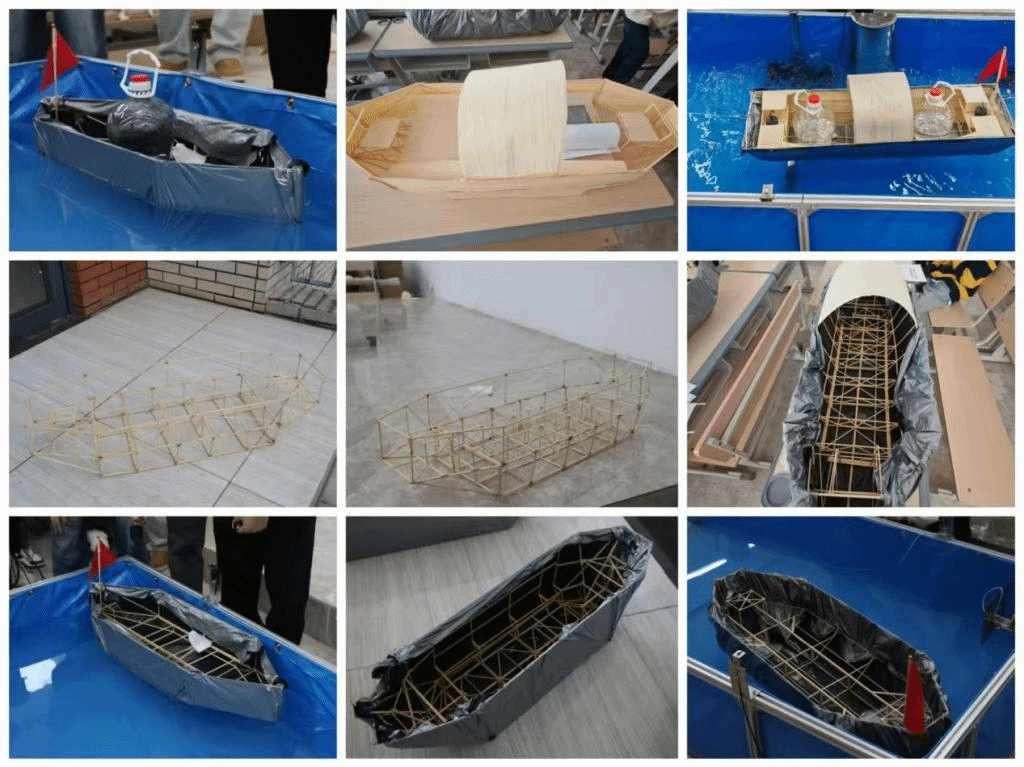 在答辩环节,各参赛队伍通过系统阐述乌篷船外形结构的设计理念、力学特性及创新点,全面展示了理论知识与实践应用的结合能力;在模型加载测试中,选手们通过渐进式负重实验科学验证了船体结构的稳固性,充分体现了工程实践的严谨性?。评委老师从结构创新性、模型制作工艺、答辩表现及加载测试结果等多维度进行综合评分?。