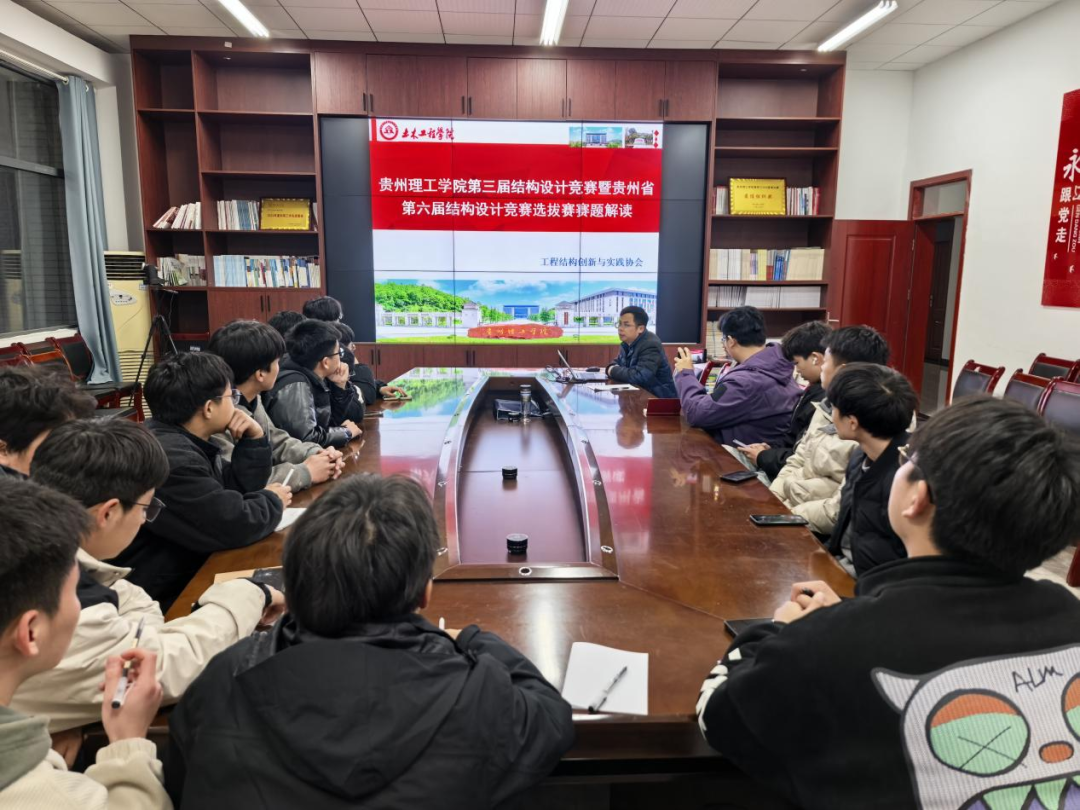 为助力学生参加第十八届全国大学生结构设计竞赛,精准把握竞赛赛题内涵,优化备赛方案,激发创新思维,提升创新实践能力,2025年3月31日晚,贵州理工学院工程结构创新与实践协会(以下简称“工程结构协会”)在敏行楼3547举办了“智建”创新创业讲座——贵州理工学院第三届结构设计竞赛暨贵州省第六届结构设计竞赛选拔赛赛题解答。此次讲座由“工程结构协会”指导老师沈汝伟老师主讲,土木工程学院部分同学参加。