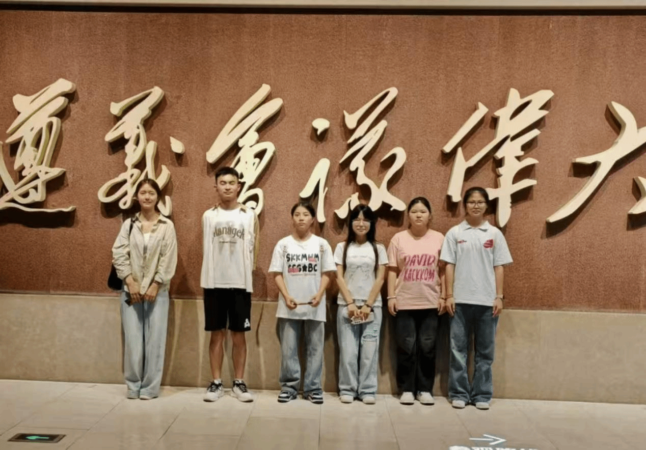 7月18-19日,实践团首站来到遵义会议会址。在庄严肃穆的会议旧址,队员们通过实物展陈、历史影像、场景复原等形式,系统学习遵义会议的重大历史意义。当站在当年那间决定中国革命命运的会议室里,触摸斑驳的墙壁,凝视泛黄的电文,队员们仿佛穿越时空,感受到那段力挽狂澜的峥嵘岁月。"坚定信念、坚持真理、独立自主、团结统一"的遵义会议精神,深深烙印在每个队员心中,为后续实践活动注入强大精神动力。