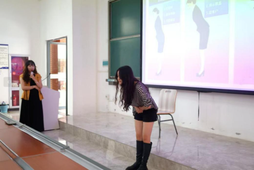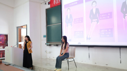 熊雪梅以理论讲解结合情景模拟的形式展开,围绕学生干部日常工作场景,重点解读了仪容仪表规范和沟通交流礼仪两大核心模块。现场通过互动演示、分组演练等环节,让学员们直观掌握站姿坐姿、握手递物等细节要点,深刻理解“以礼待人、以仪服人”在工作协作中的重要性 。