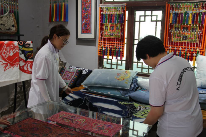 最后,团队成员前往杨文丽的扶贫车间进行参观。在这里,每一件作品都散发着浓郁的乡土气息,展现出强烈的艺术感染力。通过这次参观,团队成员深刻体会到了苗族文化的独特韵味和丰富多样性。