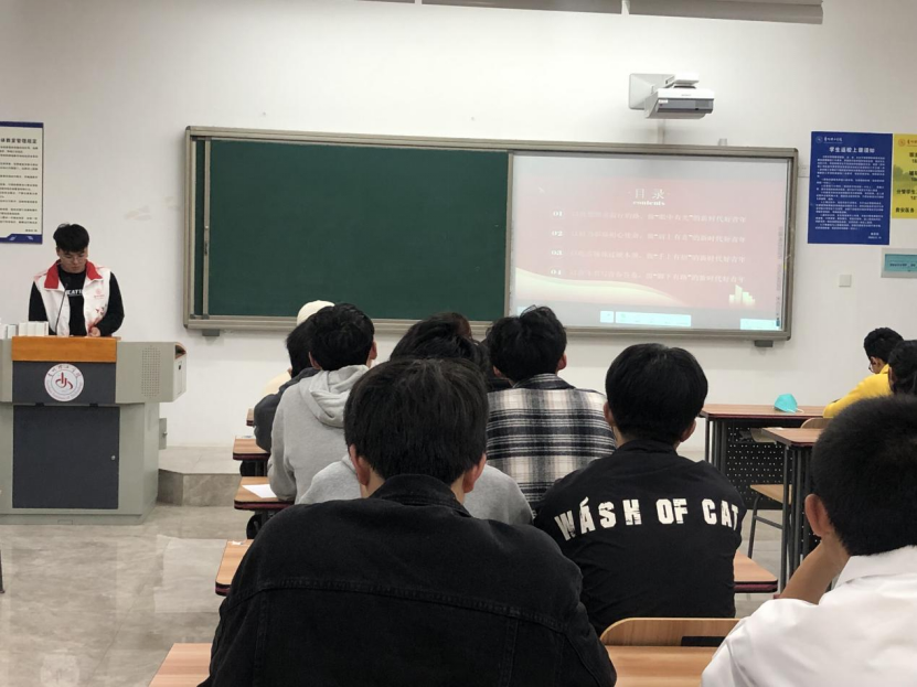 为深入学习宣传贯彻党的二十大精神,把思想和行动统一到党的二十大精神上来,号召同学们争做敢想敢为又善作善成的新时代好青年。2023年5月9日晚19:00,青年宣讲团成员周义于G1203教室为大数据学院网安221班全体同学开展以“学习党的二十大精神,做有理想、敢担当、能吃苦、肯奋斗的新时代好青年”为主题的宣讲。