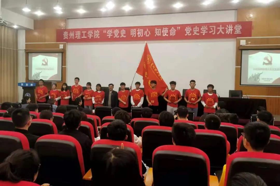 仪式上,贵州理工学院党委书记曾羽做“学党史、明初心、知使命”党史学习大讲堂第二讲,讲述长征精神的伟大意义及启示,并为中国足球彩票:大学生党史宣讲团成员颁发聘书并授旗。