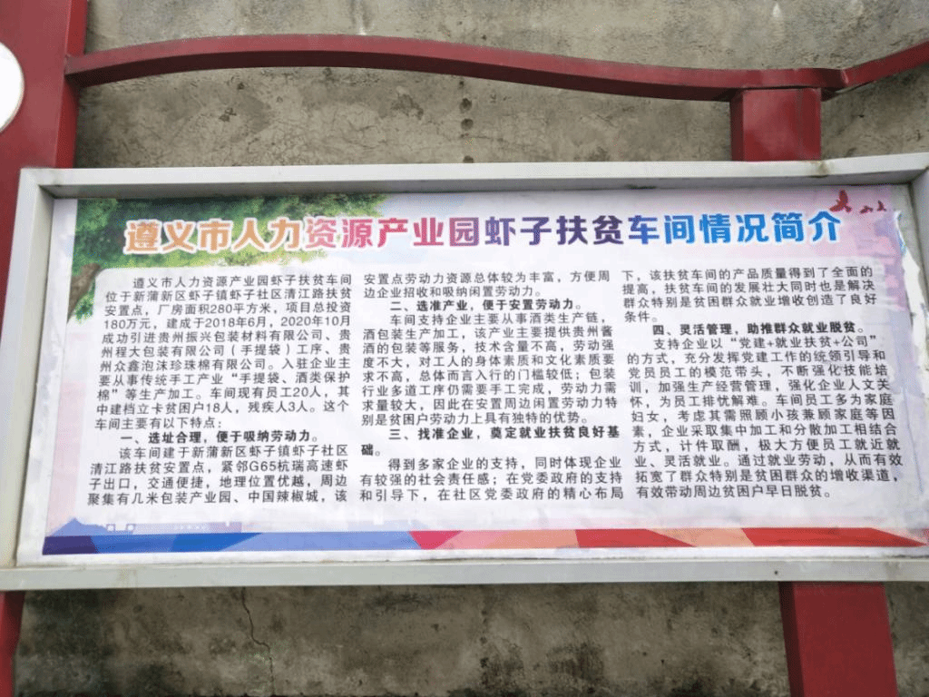 为解决搬迁群众就近就业问题,积极推动搬迁群众就业致富,新蒲新区虾子镇幸福小区积极招商引资,与遵义虎彩包装有限公司合作建成扶贫车间,主要进行酒类包装盒、包装袋的加工组装。在新建的扶贫车间里,71岁的黄成容正一边给酒盒子穿手提绳,一边和裴老二有一搭没一搭地聊着天。裴老二孩子要上学,父亲早年瘫痪在床,需要有人照顾,她在家操持家务,丈夫在外打工赚钱维持家用,日子过得紧巴巴的。现在,裴老二把小孩送去幼儿园后,只需几分钟就能到车间上班,既能够照顾孩子和老人,又能挣挣钱补贴家用。说起现在的生活,裴老二满脸笑容,直夸党的扶贫政策好,为搬迁群众办实事。