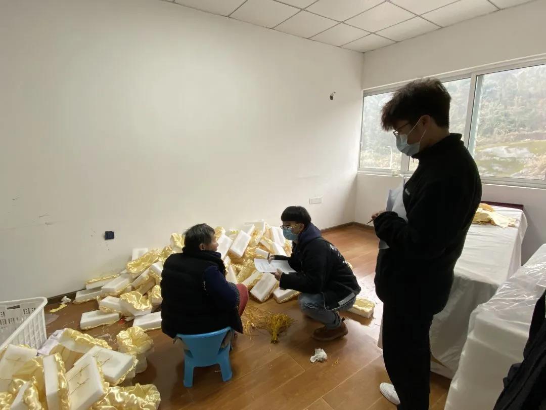 接着,队员们随扶贫办工作人员来到遵义市迁居业赢商贸有限公司,了解当地居民的工作环境和制作的产品。进入扶贫车间,见到了传奇致富带头人肖锡奎,他带头创办了遵义市迁居业赢商贸有限公司,解决了易地搬迁人员30多人的就业问题。队员们通过与肖锡奎交流,了解到当地政府对扶贫产业的支持力度非常大,不仅给他们提供加工场地,而且提供第一年不收租金第二年租金减半的好政策。交流后,肖锡奎带领小队成员走进了生产车间。队员们与生产加工人员进行学习交流,小队成员通过学习制作加工产品,实际体验了扶贫车间的工作条件。