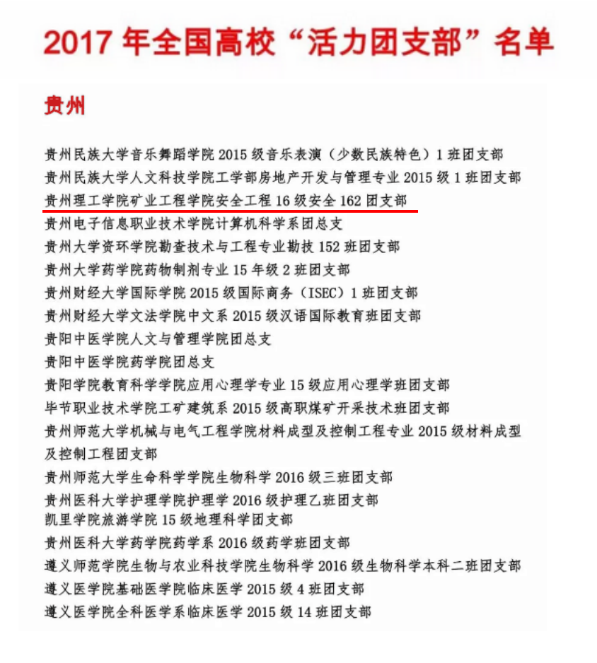 同时,五年来我院获得校级优秀共青团员的人数为118人,获得校级优秀共青团干部的人数为30人。此外,我院十分重视团支部建设和班集体建设,获得多次优秀团支部的表彰,其中安全162班最具代表性,2017年荣获全国高校“活力团支部”表彰、2019年荣获“省级优秀先进班集体”表彰。