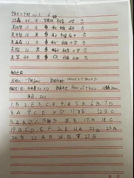 在调查走访过程中,李菊同学发现在该安置点多数是老年人以及幼儿,很难实施线上问卷调查,所以,统一由该同学挨家挨户进行纸质调查问卷,并进行记录。此次调查从1月20日-1月26日为期6天的实地调查与走访。