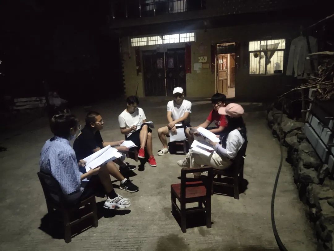 为了此次实践,小组成员都做了充足的准备,并做了多次会议讨论。小组集结前线上也进行了多次讨论。到达金龙村之后,团队通过白天初步的走勘了解到了一些情况,夜晚时分立即进行了会议讨论,会议中强调实践中所要注意事项及安全问题,并与金龙村村委会确定实际的行程。