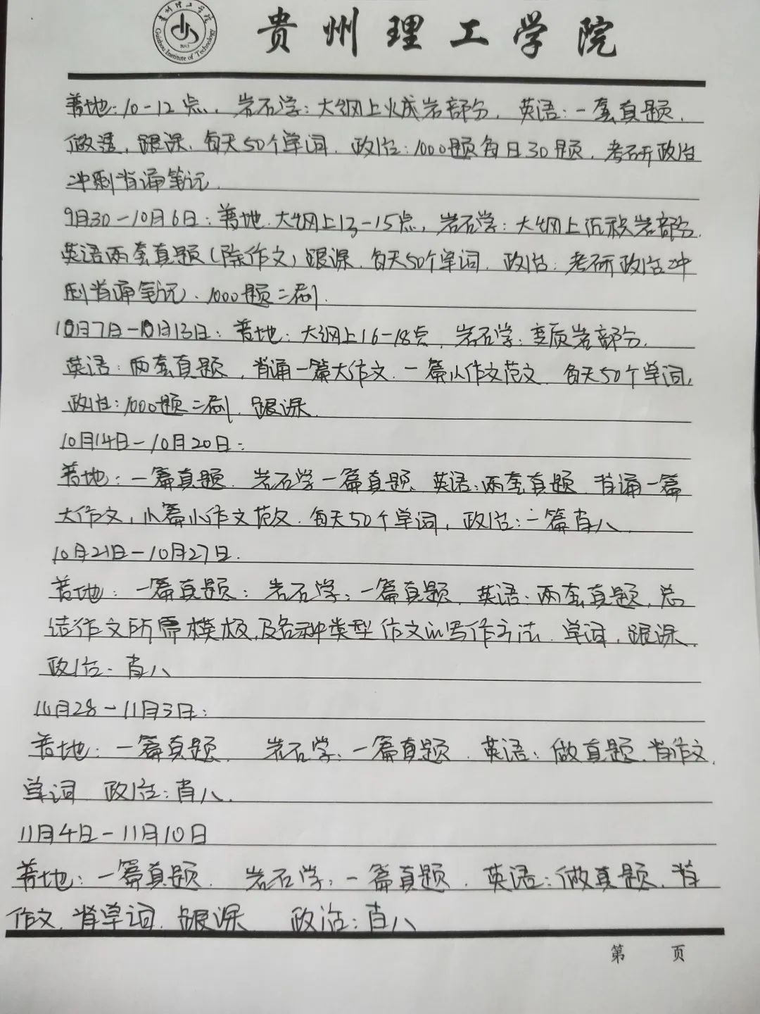 9月-10月 提升阶段,政治应着重背诵