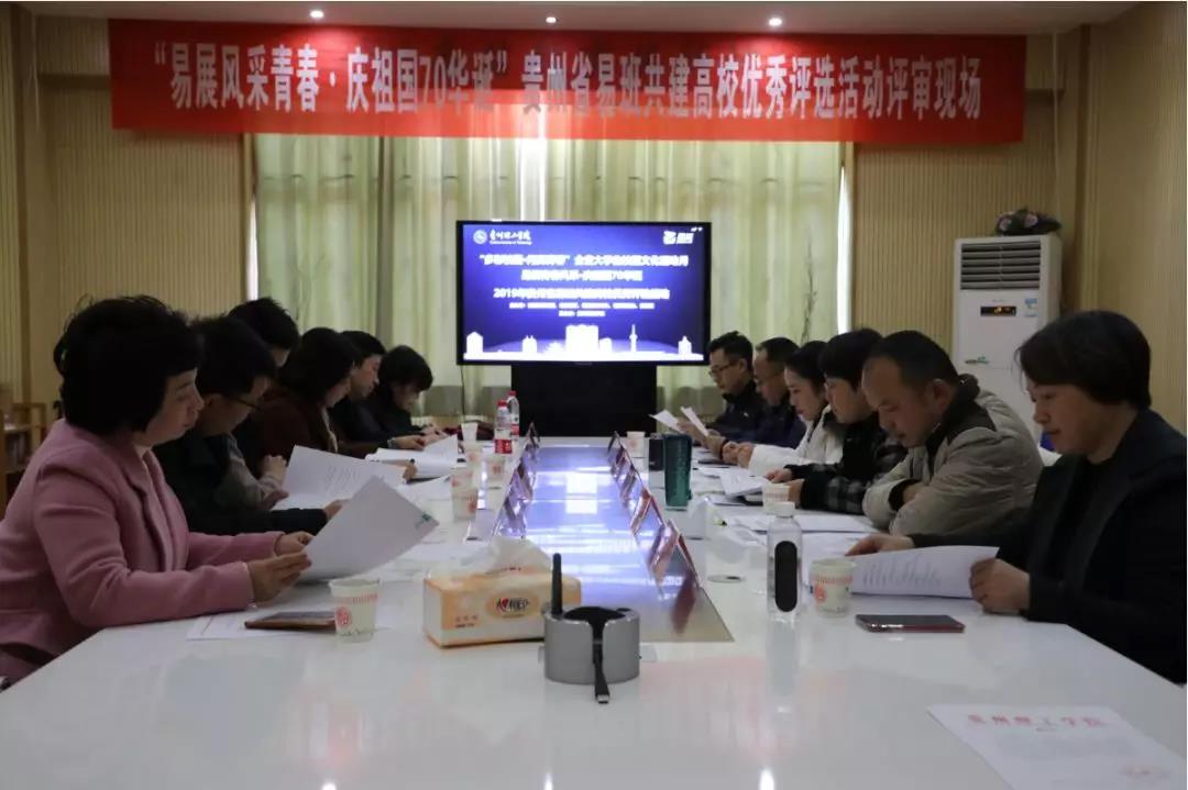 为深入推进全省高校网络思想政治工作,切实加强高校易班推广建设,增强易班网络思想政治教育针对性和有效性,发挥有关高校在易班建设上的示范引领作用,充分挖掘好的经验和做法,12月6日,由省委教育工委、省教育厅、省精神文明办、省委网信办、团省委主办,贵州理工学院承办的第十四届“多彩校园·闪亮青春”全省大学生校园文化活动月之“易展青春风采·庆祖国70华诞”2019年贵州省易班共建高校优秀评选活动在贵州理工学院开展。活动特邀贵州省教育厅与贵州省高校共10多位专业人士参加线下评审,涵盖优秀易班工作站、优秀易班指导教师、优秀易班工作站站长、优秀易班辅导员、优秀易班特色应用五个项目