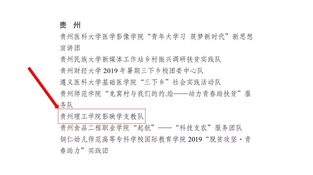 2019年全国大中专学生志愿者暑期 “三下乡”社会实践活动优秀团队名单 (贵州省):
