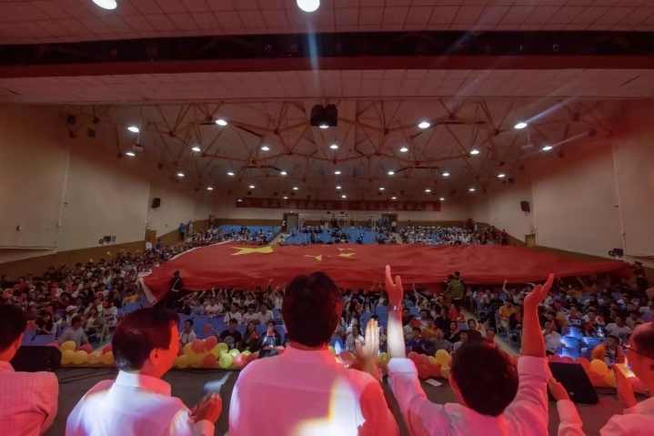 中华儿女多奇志,敢教日月换新天。文艺汇演在《我爱你中国》乐队演奏中拉开序幕,深情流淌的旋律奏响了新中国在70年发展中的昂扬步调,同学们伴着旋律挥动起手中的五星红旗,沉醉在悠扬乐声里。