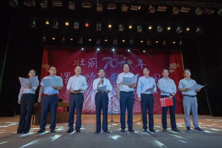 阿哈湖畔秋风送爽,理工校园红旗飘扬。9月30日下午,“壮丽70年 理工师生歌唱祖国”为主题的师生文艺汇演在逸夫大礼堂隆重举行。校领导曾羽、苏向东、梁杰、宋建波、胡兴灿、贺梦依、高勇和1000余名师生代表观看了演出。理工师生们用音乐和舞蹈为祖国庆生,向祖国70华诞献礼。