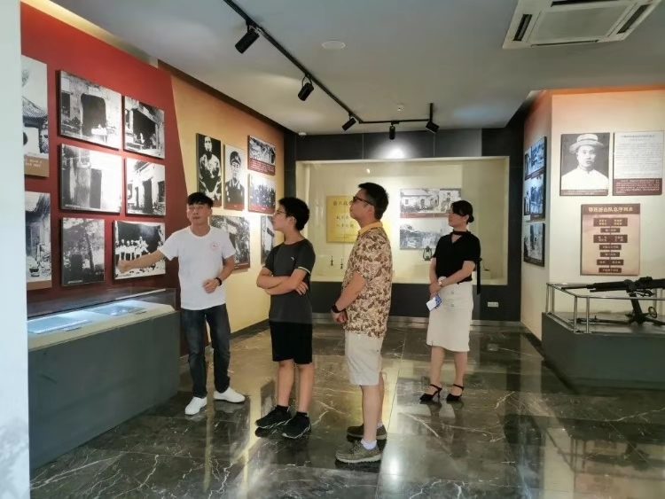 2019年7月28日,实践小组按计划在周逸群陈列馆参加讲解培训,馆内讲解员黄雨珠、蒋雪、万冰冰分别带队对同学们进行讲解培训。华岚老师一直随行从旁点评,令同学们受益匪浅。在同学们实践过程中,恰逢当地警察局组织到周逸群纪念馆开展活动,同学们抓住机会为警官们进行了讲解,并从中得到了锻炼和提高。
