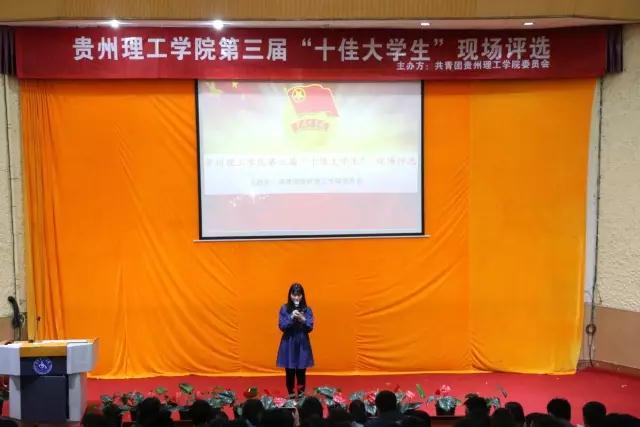 经过现场投票、校团委审核,土木学院杨添宋、经管学院唐晓敏、机械学院范青松、矿业学院王浩、食药学院张彦、电信学院王德文、土木学院郭壮豪、化工学院吴鹏、食药学院王建超、资环学院梁鹏等10名同学荣获贵州理工学院2016年度十佳大学生荣誉称号。