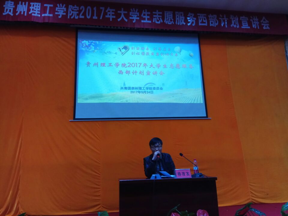 2017年5月24日中午,贵州理工学院2017年大学生志愿服务西部计划宣讲会在逸夫中国足球彩票中心小报告厅举行。