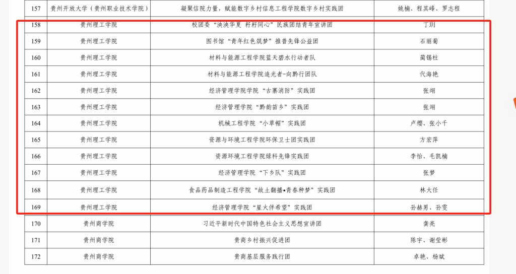 2024年贵州省“三下乡”社会实践优秀团队