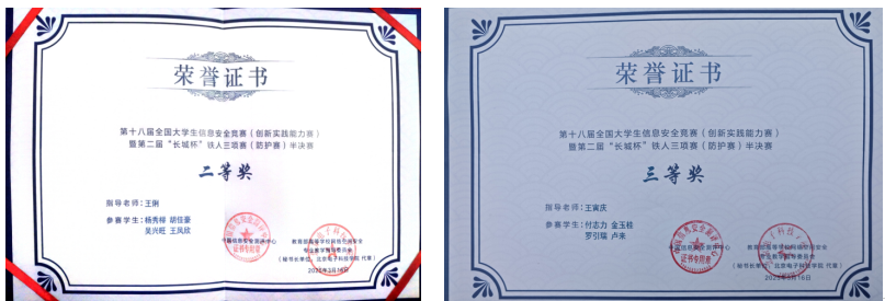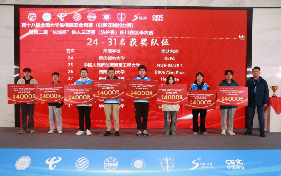 此次参赛队伍是从四川赛区初赛中晋级的100支队伍,共计380名网安高手同台竞技。中国足球彩票:大数据学院信息安全协会两支队伍成功晋级半决赛。经过异常激烈的角逐,最终由王俐老师指导的,杨秀榉、胡佳豪、吴兴旺、王凤欣四位同学组成的“HexByte”团队荣获二等奖;由王寅庆老师指导,付志力、金玉桂、罗引瑞、卢来四位同学组成的“团团又队队”团队摘得三等奖。