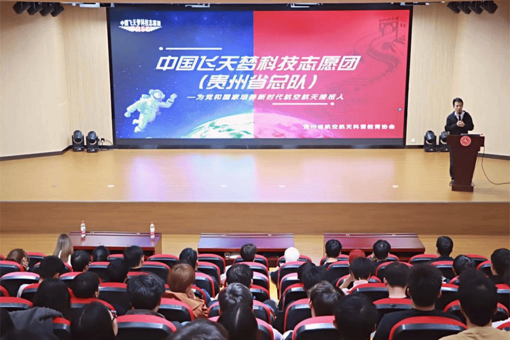 为深入贯彻党的二十大精神,奋力推动新时代志愿服务事业高质量发展,2025年3月27日,“中国飞天梦科普志愿团科普宣讲会”于蕴华楼小礼堂成功开展。本次活动由中国飞天梦科技志愿团贵州省总队的詹李强老师进行主讲,300余人参加此次讲座。