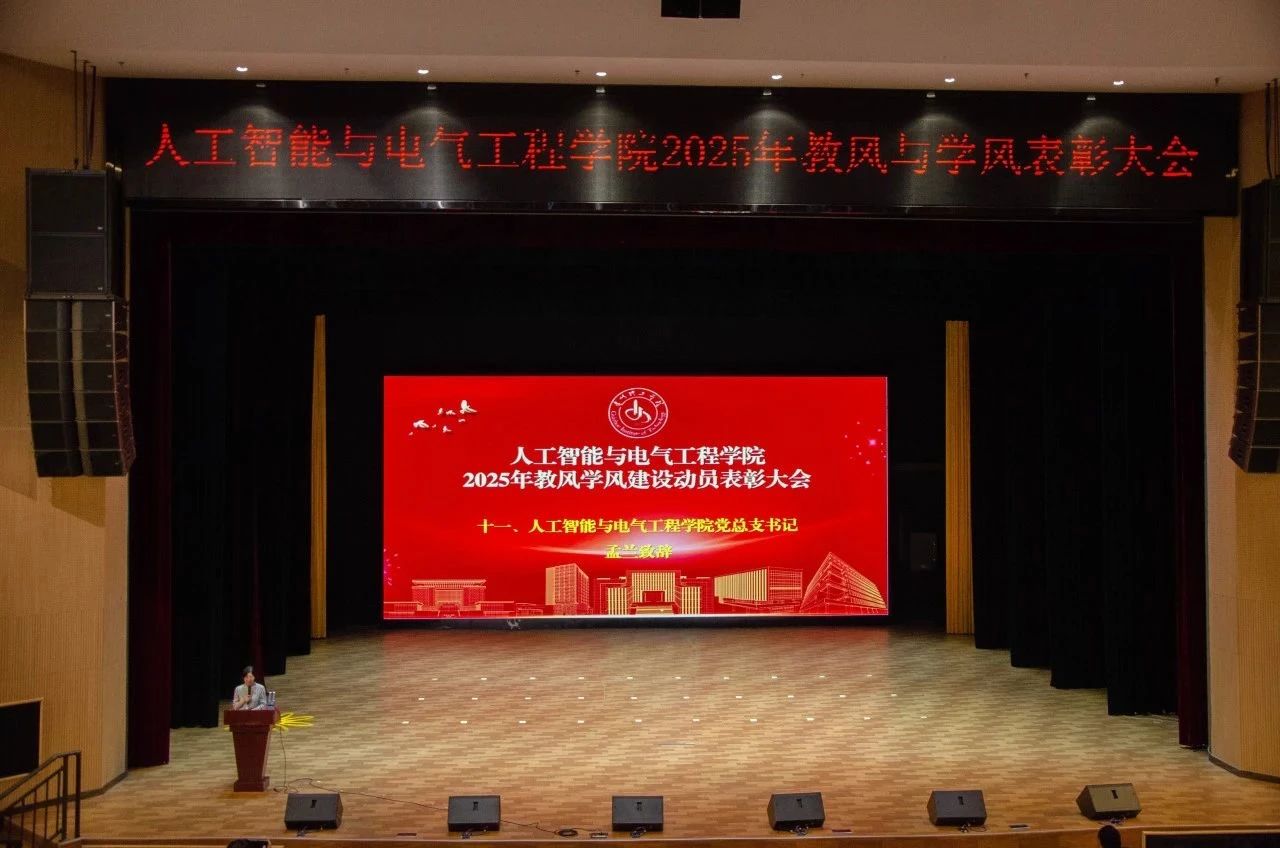5月22日下午,人工智能与电气工程学院在蕴华楼大礼堂隆重召开2025年教风学风建设动员表彰大会,学院党总支书记孟兰、院长龙飞、副书记程星晶、副院长张均、副院长马林联领导班子成员,全体教师、辅导员、班主任及全体学生参会。大会由学生科科长顾英主持。