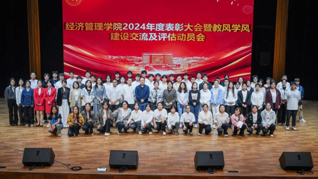 5月15日,经济管理学院在蕴华楼大礼堂召开2024年度表彰大会暨教风学风建设交流及评估动员会,800余名师生参会。大会表彰先进,副院长王凯宣读决定,张翊解读学风建设方案。师生代表分享经验感悟,王凯部署教风学风建设与评估工作。党总支书记周红总结,强调评估意义,号召以评促建。大会为学院迎评促建凝聚合力。