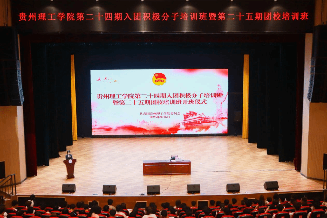 2025年9月6日至7日,贵州理工学院第二十四期入团积极分子培训班暨第二十五期团校培训班在蕴华楼大礼堂成功举办。本次培训以“回溯历史汲取力量,筑牢信念勇担使命”为主题,旨在引导学员以青春之姿奔赴时代新征程。开班仪式由校团委大学生基层团建指导中心殷洁主持。