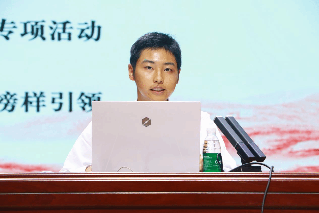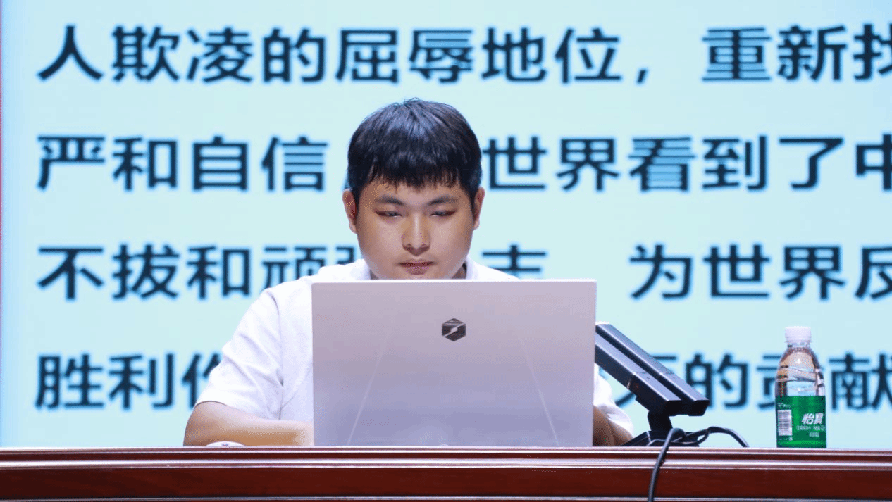 校团委学生兼职副书记葛金林以《纪念抗战胜利,坚定民族信念》为主题,用案例回溯抗战历史,引导同学们从胜利征程中汲取力量,进一步坚定民族信念,传递青年一代赓续红色血脉的责任与担当。
