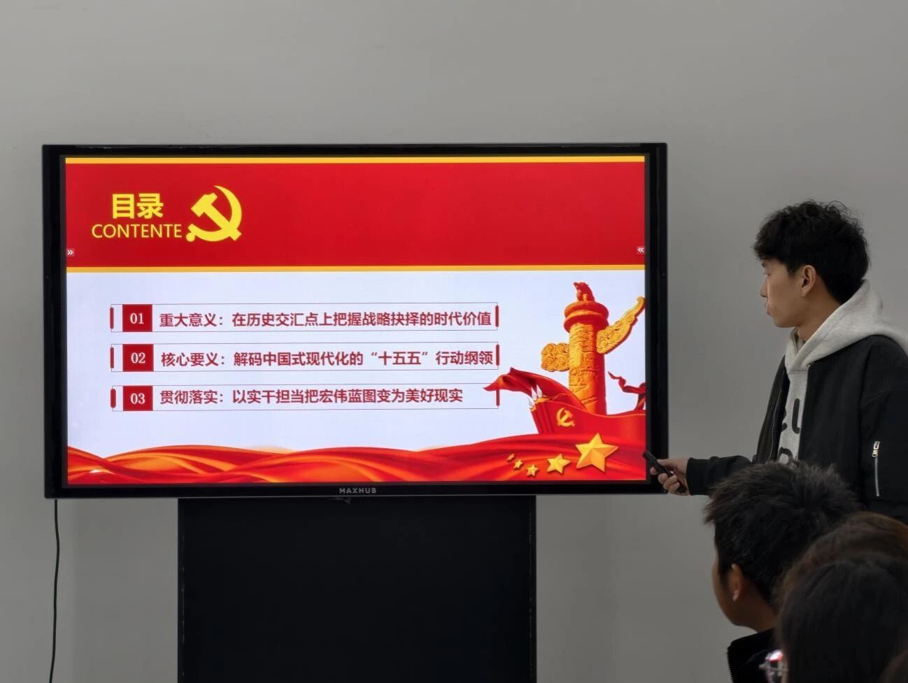 活动中,范青维、李鸿辉分别带领“青马班”和“骨干班”学员围绕中国共产党第二十届中央委员会第四次全体会议精神展开学习与深度讨论。讨论环节,学员们结合身边发展实例和自身专业领域,分享学习心得与实践思考。一名“青马班”学员表示:“党的二十届四中全会的召开,正式吹响了向‘十五五’目标奋进的号角,这正是当代青年建功立业的最好时代舞台。作为‘青马工程’学员,我将持续深化对全会精神的学习理解,把党中央擘画的宏伟蓝图学深悟透,在推进中国式现代化的伟大实践中找准青春坐标,放飞青春梦想,书写无愧于时代与人民的壮丽篇章。”