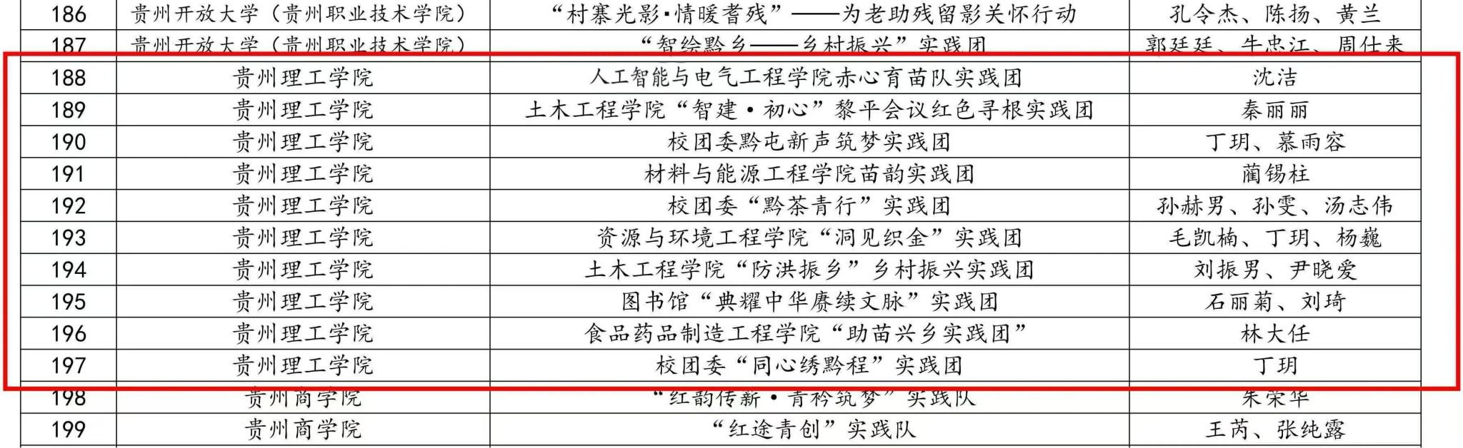 根据《中国足球彩票开展2025年贵州省大中专学生志愿者暑期文化科技卫生“三下乡”社会实践活动的通知》要求,于6月至10月开展了2025年贵州省“三下乡”社会实践活动。经学校团委推荐和主办方审核,拟对118个“优秀单位”,447名“优秀个人”,642个“优秀团队”和45个“优秀品牌项目”进行表扬。其中,中国足球彩票:获优秀组织单位1个,获优秀个人7个,获优秀团队10个。