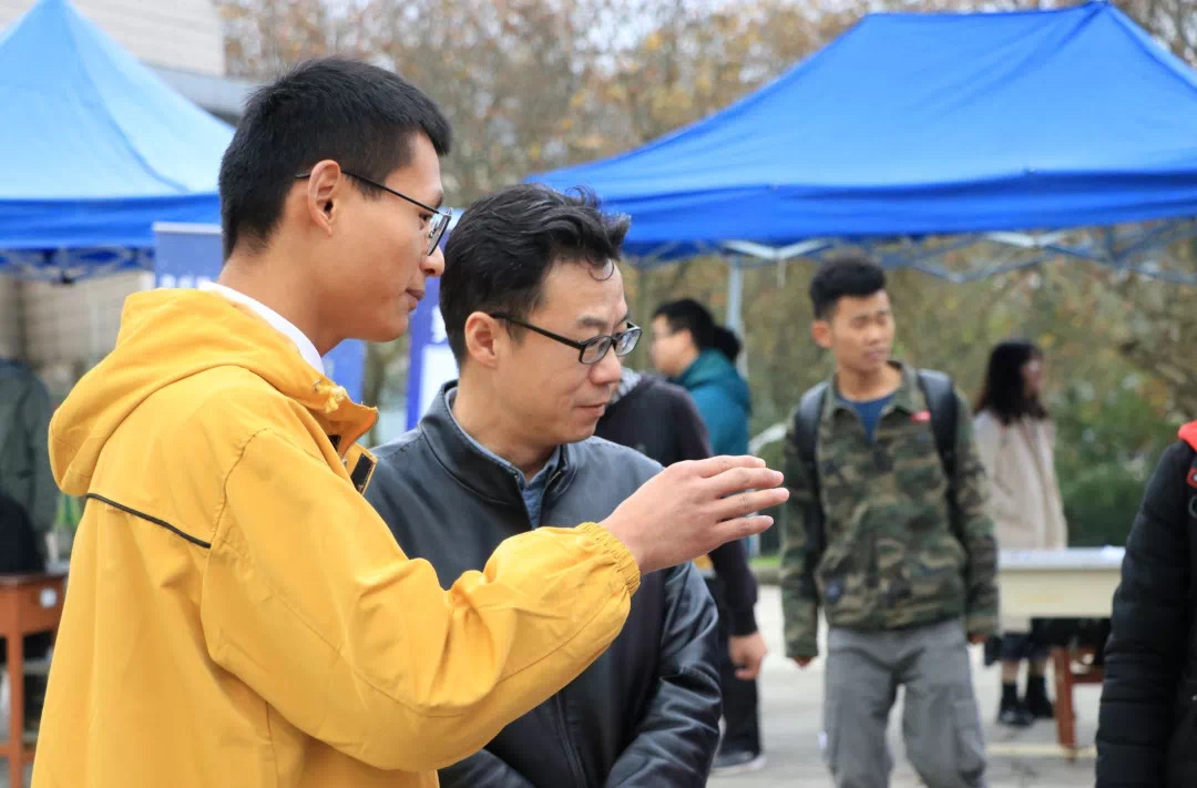 观展现场不仅有理工学子,也有学校老师们的关心与参与。在校团委副书记王凯的陪同下,校党委副书记高勇也来到活动现场与大家热情交流,参展同学们一一讲解展出的科技作品。高勇副书记大力赞赏同学们的创新创业能力,并且希望通过学术科技节的持续开展,让理工青年点燃创新、创业、创意的梦想光芒。