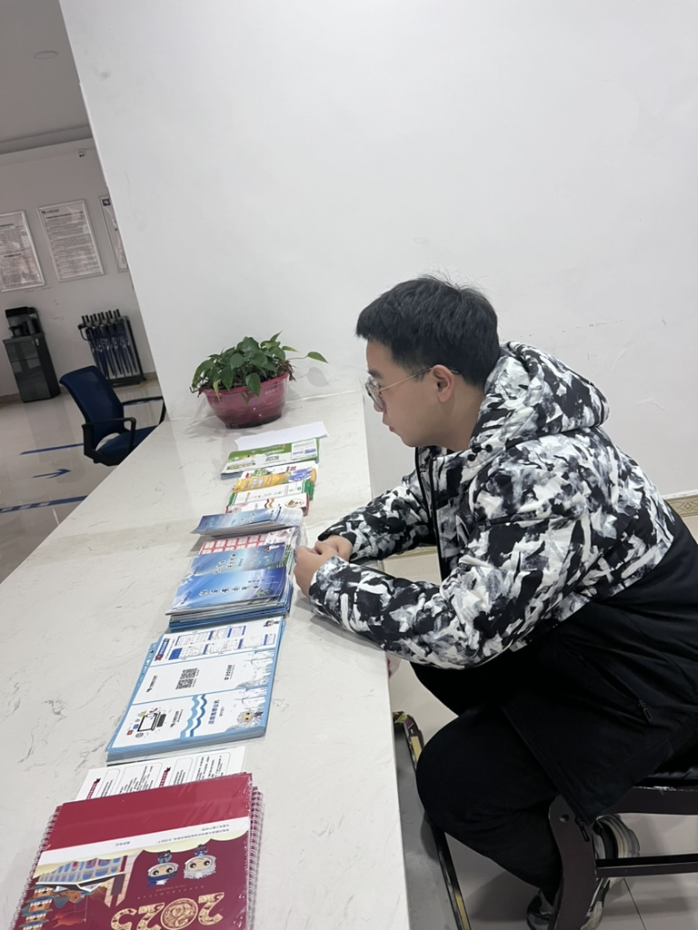 在志愿服务期间,杨佑涛同学主动承担起整理资料的任务。面对分类杂乱的文件,他耐心细致地梳理、分类和归档,建立了更加清晰的资料管理系统,为日常工作的高效开展提供了有力支持。