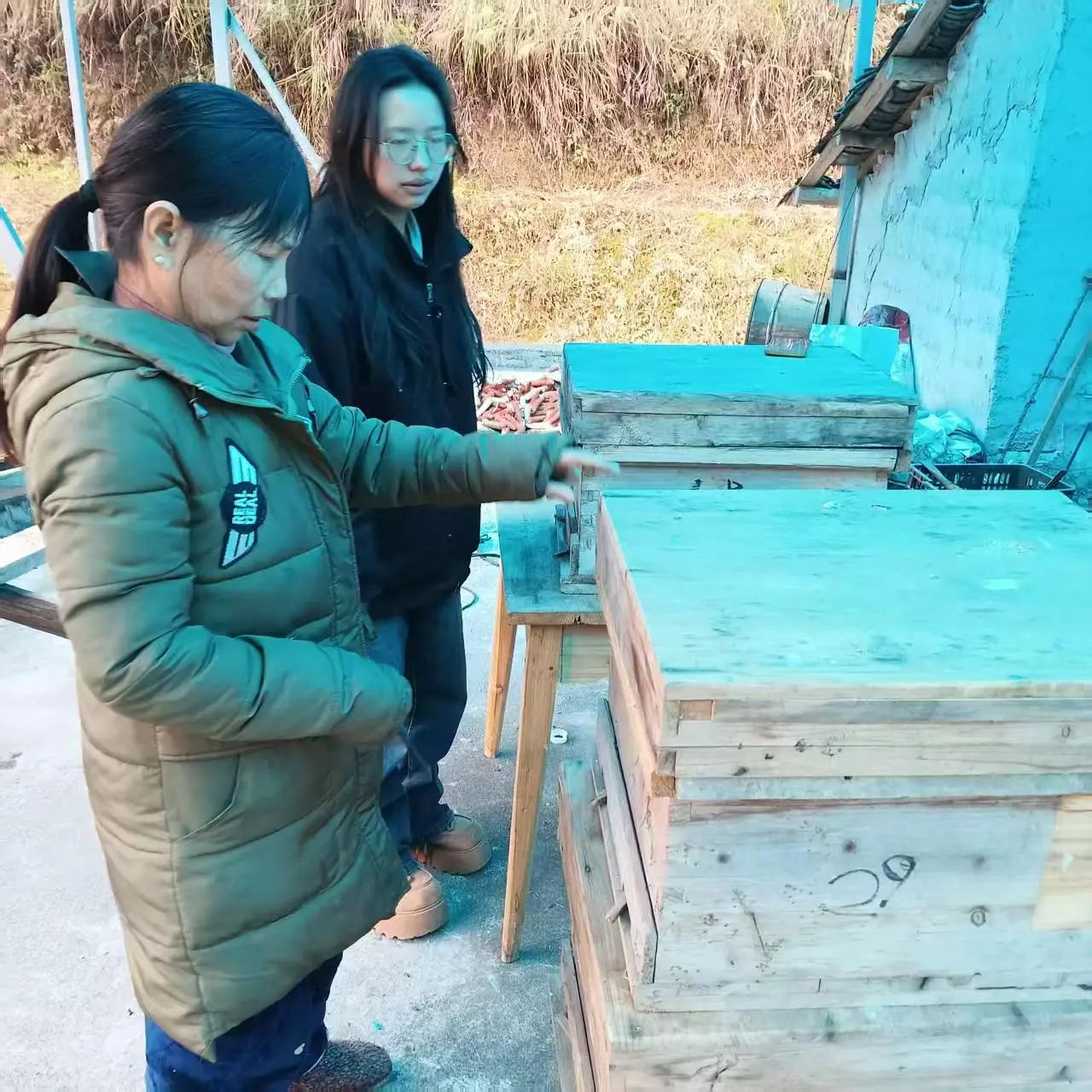 2025年2月21日至22日熊勤州同学跟随农户在蜂箱前进行实地观察记录。经观察谈话了解到蜂农们凭借传统经验积累了一定的养殖技术,但由于当地气候条件的限制,以及产品附加值不高,蜜蜂养殖的发展仍然存在较大的提升空间。熊勤州同学详细记录了这些问题,并与农户们探讨了可实行的解决方案。