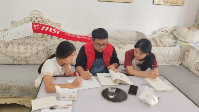 随后,团队为20名学生提供课业辅导,此次课业辅导被孩子们亲切地称作“难题门诊”,物理、数学是重点“挂号”科目,团队成员把“杠杆原理”搬到乒乓球案台:用球拍做支点、乒乓球做砝码,让孩子们在挥拍间体会力臂变化。此外,团队成员还引导孩子们观察不同角度的发球,将其作为斜抛运动的现实案例。20名学生中,有6名物理长期“卡线”,团队成员利用周末时间入户进行“一对一”辅导,用门框上的拉力器演示弹力,用楼梯台阶讲解功和能。同时团队按年级分组,针对数学公式应用、英语语法难点等开展专项辅导,采用 “错题精讲+同类题练习” 模式,帮助青少年查漏补缺。在活动中,青少年不仅解决了课业“卡壳”问题,还通过知识与实践相融合,体会到 “学习源于生活”的原理。团队成员在辅导中也巩固了专业知识,学会了根据不同学生的性格调整教学方法,提升了沟通与应变能力。团队凝聚力也在分工协作中增强,为今后的活动积累了 “因材施教” 的经验。