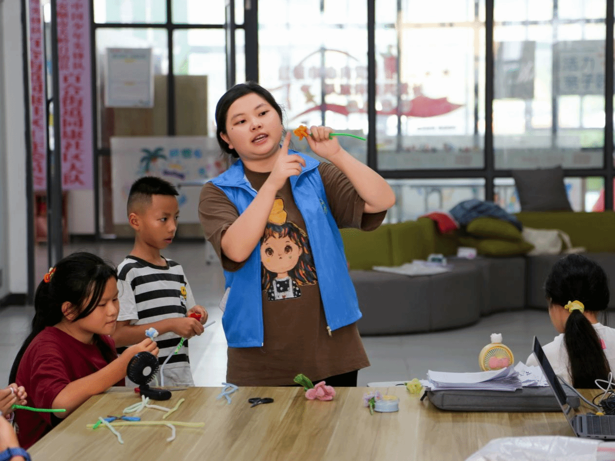 7月24日,“指尖创趣,童梦绽放”模块展开。孩子们在团队成员的指导下用扭扭棒制作“满天星”,将其变成“永不凋零的星辰”。除此之外,实践团队还介绍了国家级非物质文化遗产——安顺地戏,让孩子们发挥想象力,亲手制作独特面具,感受传统文化的独特魅力。