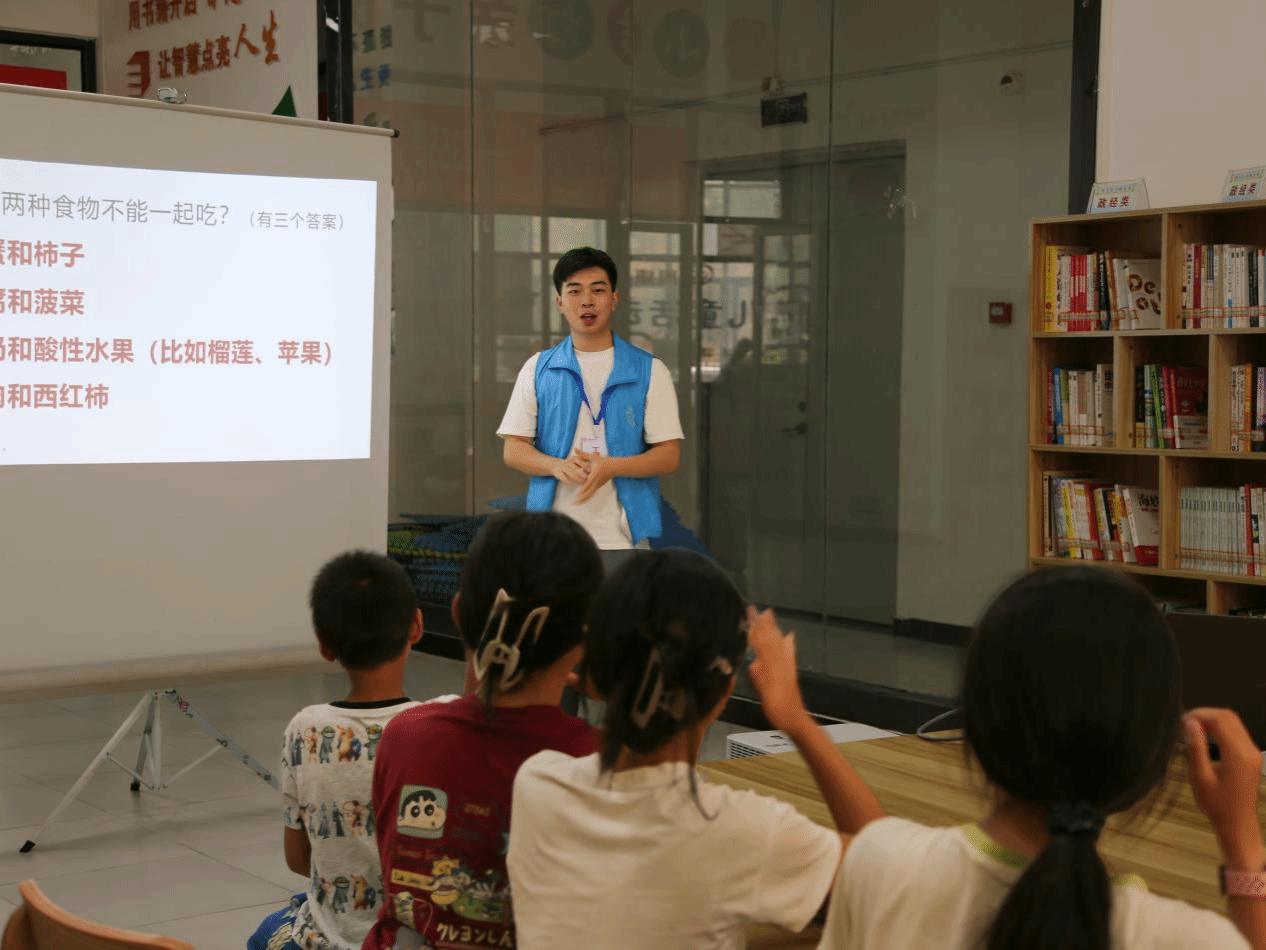 7月22日,“初识暖相遇,安全伴我行”模块正式启动。团队成员首先通过自我介绍和趣味互动游戏拉近与孩子们的距离。随后围绕安全防护主题展开教学,内容涵盖防溺水、交通安全、食品安全及儿童性教育知识,团队成员摒弃传统说教模式,采用情景剧演绎、知识竞答等互动形式,并设计场景、分饰角色,引导孩子们识别危险信号、学习正确的求助方式和避险方法。这种生动的教学方式极大激发了孩子们的兴趣,使安全知识真正入脑入心,有效提升了他们的自我保护意识和能力。