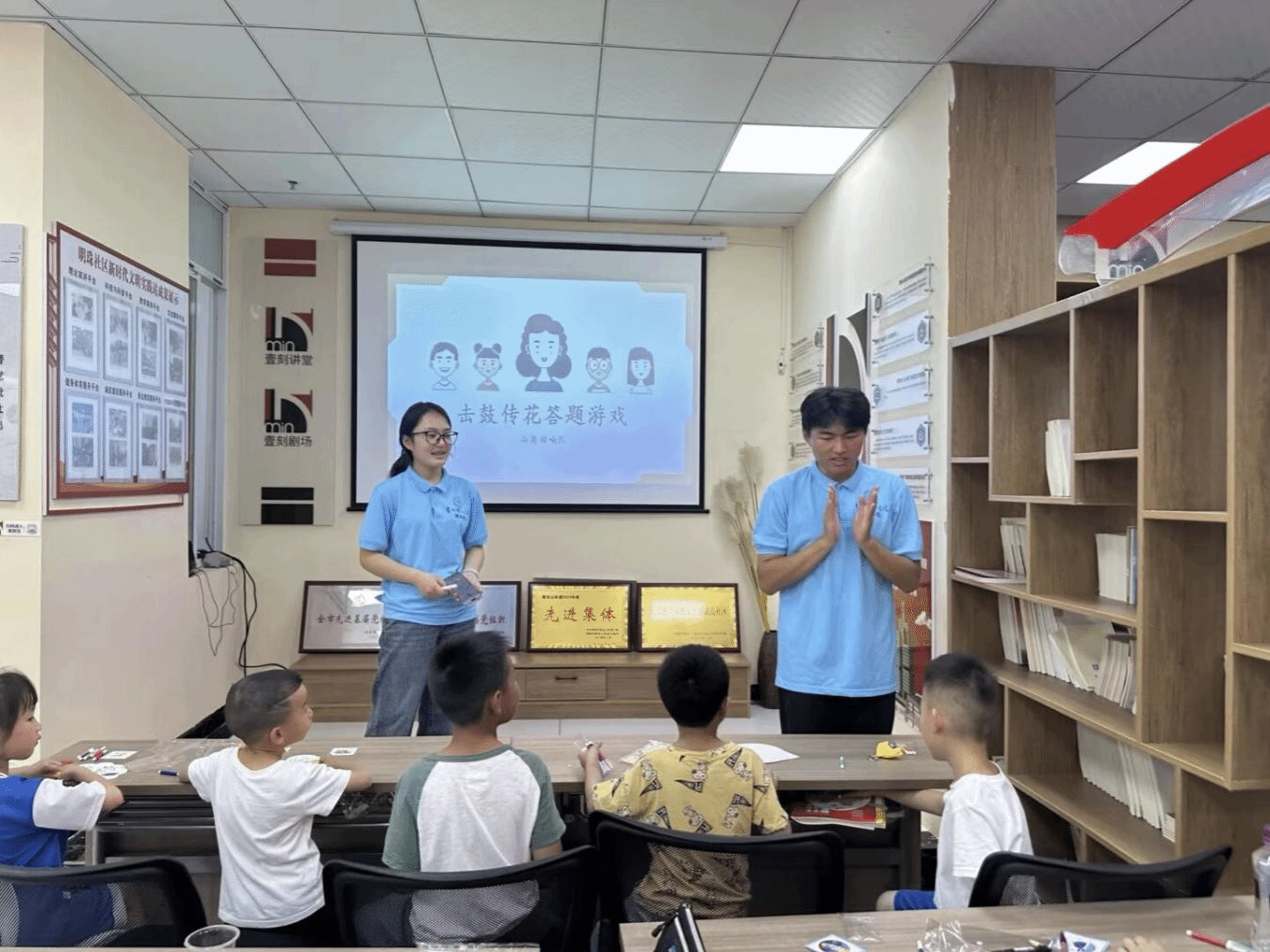 7月23日,团队结合未成年人的认知特点,创新设计并开展了“击鼓传花”科普知识竞答活动。活动中,团队成员程诗雨以击掌声为信号组织孩子们传递花。当击掌声停止时,持花的人需回答科普知识问题。面对提问,孩子们既表现出独立思考的积极性,也适时向在场的家长或教师寻求帮助,现场互动氛围活跃。活动结束后,团队成员向参与竞答的孩子发放了文具等纪念品。该活动将科普与游戏相结合,让知识在欢乐互动中传递,实现了趣味性与教育性深度融合 。