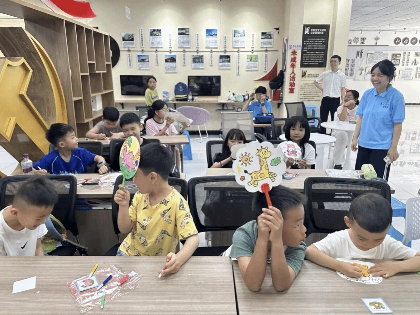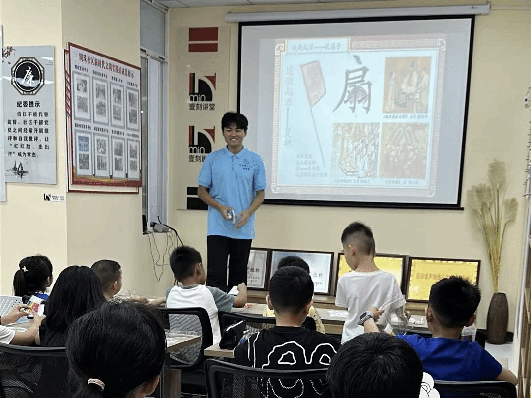 7月21日至22日,团队面向未成年人开展了以“激发创造力,培养动手能力”为主题的手工扇面绘制活动。活动期间,团队成员先向孩子们分发空白扇面,随后通过多媒体课件讲解了扇面艺术的历史渊源与创作要领,并指导他们完成扇面设计与绘制。活动中,孩子们热情高涨,积极参与,通过亲手操作,他们体验到了创作的乐趣和艺术之美。最后,团队成员对孩子们的创作作品进行了展示。此次活动,既丰富了未成年人的课余生活,又提升了他们的动手能力和创造力。