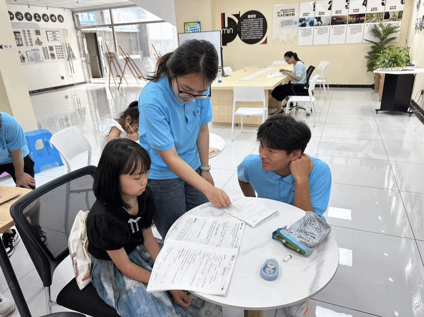 7月18日至20日,团队前往社区活动中心深入了解社区未成年人的现状,并在黄磊老师的主持下讨论实施方案的细节,以确保后续环节的顺利开展。针对当地未成年人课后辅导资源匮乏的现状,团队组织开展了课堂辅导活动,为他们提供了一对一的学科答疑服务。在本次活动中,孩子们积极提出暑期作业中的难题,团队成员针对性地进行了解答,并帮助他们构建了知识体系。本次活动不仅帮助未成年人掌握了学习方法,巩固了课堂知识,还激发了他们的学习动力,为学业成绩的提升提供了有力支持。